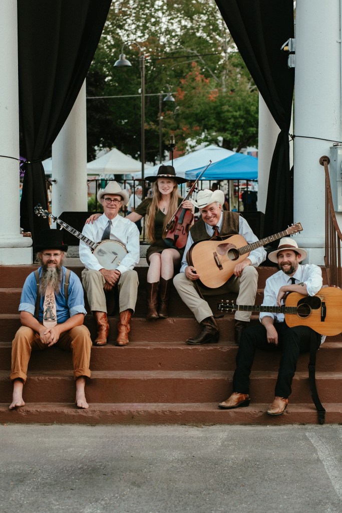 The World Famous Grassholes play high-energy bluegrass (yes, a little bit like that Billy Strings guy, but also like Greensky and Leftover Salmon and Mighty Poplar, etc.), a mix of original compositions, classics, and cool covers. It’s good for dancing and nodding your head and tapping your feet, and meant to be enjoyed with friends and family. Part of a long legacy of performers that goes back to 2000, the Grassholes feature Heather Kahill on fiddle, Merrill Marsh and Sam Pfeifle on guitars, Flann O’Brien on the stand-up bass, and Field Rider on Banjo and harmonica. Everybody sings a bit here and there, whether you like it or not.