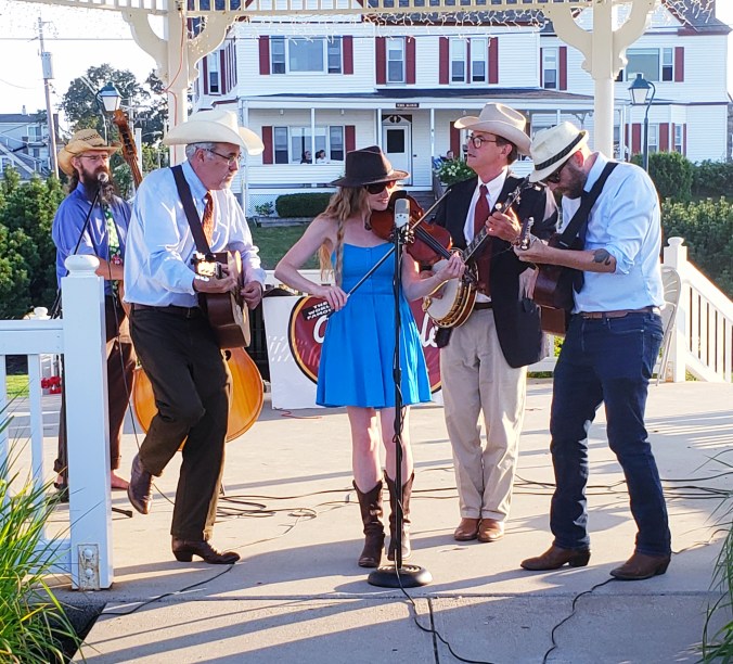 Three Conley guitars, three guys in Santa hats (Bill Umbel guests in the middle). Photo credit: Susie P.A tight set at Sun Tiki from December, 2023. Photo credit: Alyson Peabody.The sun sets on the Grassholes at Poland Spring Resort.Rocking the Sandy River Music Festival.What? A vertical image? No boots? Must be Harry Brown’s Farm.Oh, hey, we’re on “207.”Socially distant rehearsing.Can you guess what venue we were playing in?York sure knows how to put up a gazebo.Boy, howdy, that’s a good looking band.